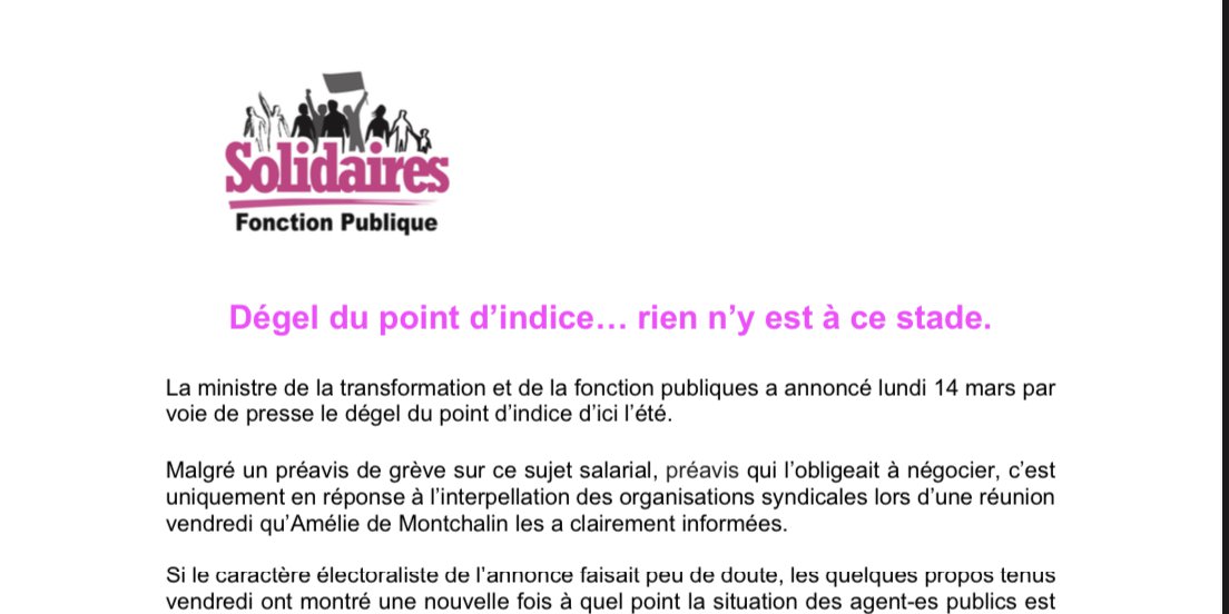 Pour Solidaires ce n’est pas à l’été qu’il faut agir mais immédiatement. Dégeler le point d’indice et attribuer à toutes et tous un nombre de points d’indice identique afin de réduire nettement les inégalités.