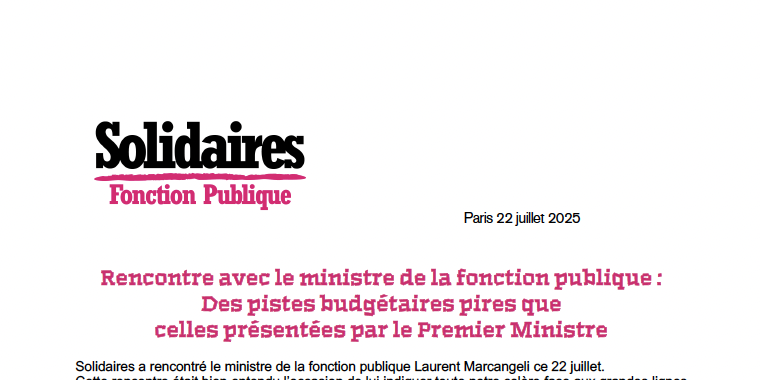 Solidaires a rencontré le ministre de la fonction publique Laurent Marcangeli ce 22 juillet.