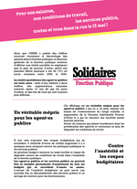 > Pour une Fonction publique respectée ! Pour des Services publics de qualité ! pour les agents et les agentes ! > Pétition unitaire : Pour la sauvegarde et le développement des petites lignes ferroviaires, véritables lignes de vie de nos territoires ! > #134 - mai 2025 > Solidaires et égales : n°40 - mai 2025 > Sundep Solidaires - Notre-Dame-de-Toutes-Aides : une réponse sécuritaire à l’opposé des besoins de l’école > SUD Santé sociaux - Pour nos salaires, nos conditions de travail, En grève le mardi 13 mai ! > SUD Rail - Ferroviaire : soutien aux cheminot·es portugais·es > Solidaires Finances publiques - [Tract intersyndical ] 13 mai : Grève de la Fonction Publique. Toutes et tous en Grève à la DGFiP ! > Avec SUD Rail, dans l'Aude comme ailleurs, en mai, c’est la grève qui paie ! > SUD Insee - Autoritarisme et répression syndicale à l’Insee > Solidaires 93 - Non à la destruction du parc du campus condorcet > UNIRS - Trump, Musk et Vance au pouvoir, une nouvelle phase du capitalisme ? > UNIRS - Communiqué : À mort les personnes retraitées !