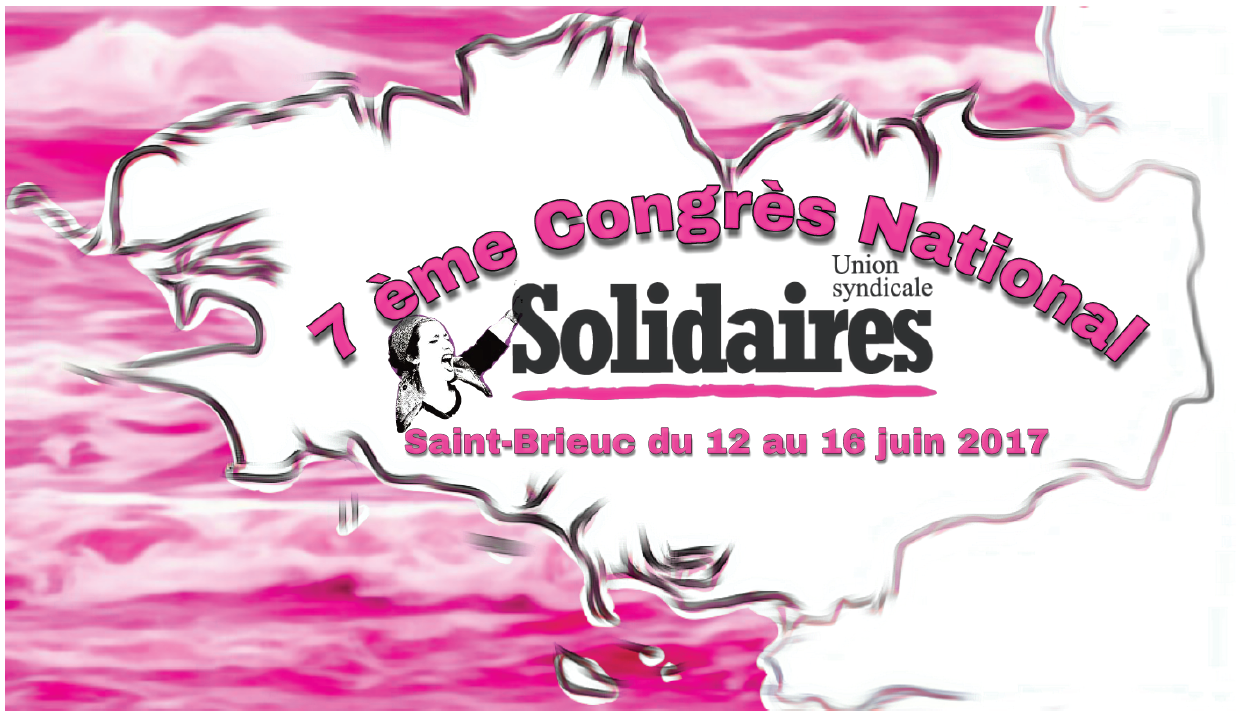 Le prochain congrès national de l'Union syndicale Solidaires se déroulera à Saint-Brieuc, organisé par l'ensemble des Solidaires départementaux de la région Bretagne, du 12 au 16 juin 2017. Il s'agira du 7ème congrès de notre jeune union syndicale antiraciste, féministe, écologiste, internationaliste, anticapitaliste, et unitaire.