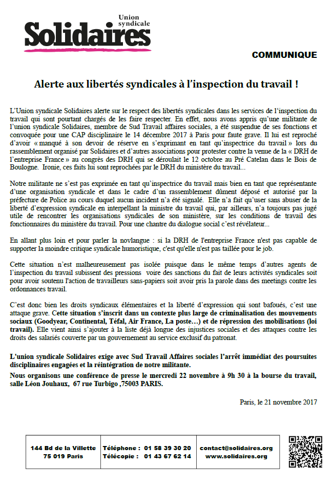Les communiqués de Solidaires