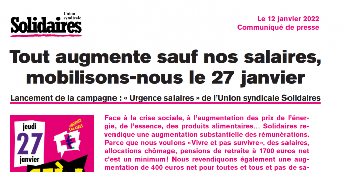Conférence de presse Campagne salaires/ 27 janvier, le 18 janvier à 10h en live Facebook sur la page de Solidaires
