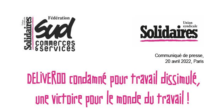 L’Union syndicale Solidaires, la Fédération SUD Commerces et Services, et SUD Commerces et Services IDF, parties civiles au côté de 116 livreurs/euses et d'autres syndicats, se félicitent de cette victoire, même si la condamnation financière est infime par rapport aux bénéfices de la plateforme (219 millions d’euros en France en 2021) et au nombre de coursiers régulièrement blessés, voire décédés en effectuant des livraisons pour elle.