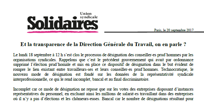 Et la transparence de la Direction Générale du Travail, on en parle ?