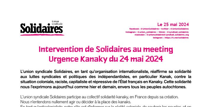 L’union syndicale Solidaires participe au collectif solidarité kanaky, en France depuis sa création.