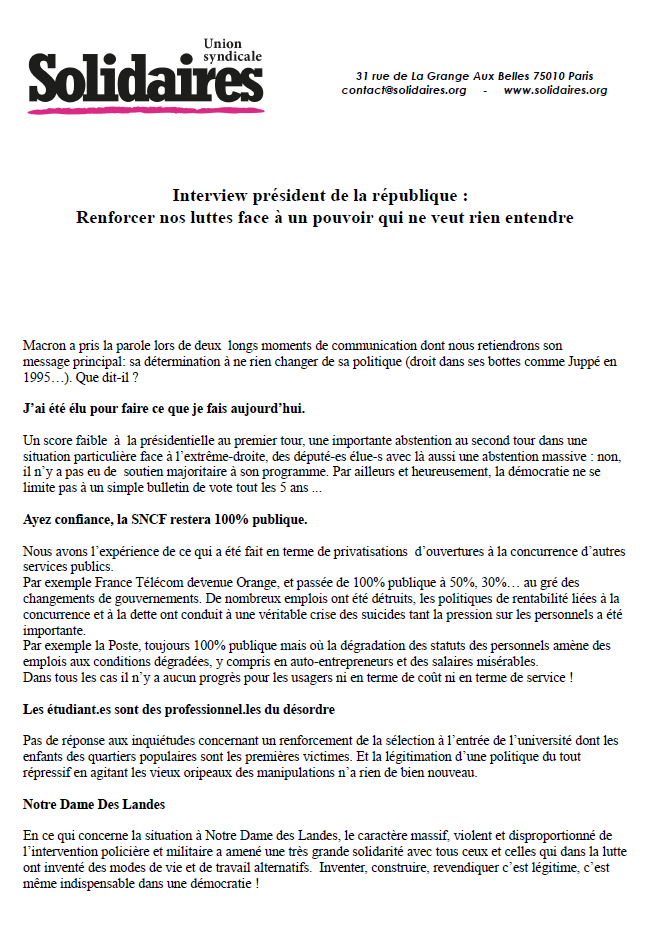 Là aussi, sans surprise le président appuie le texte du ministre de l’intérieur qui va restreindre le droit d’asile et accentuer la criminalisation des migrant-es et de leurs soutiens.