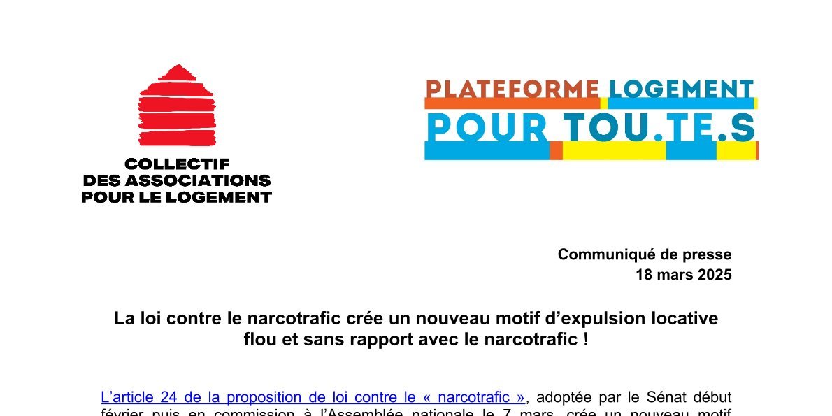 L’article 24 de la proposition de loi contre le « narcotrafic », adoptée par le Sénat début février puis en commission à l’Assemblée nationale le 7 mars, crée un nouveau motif d’expulsion locative sans rapport direct avec l’objet de la loi.