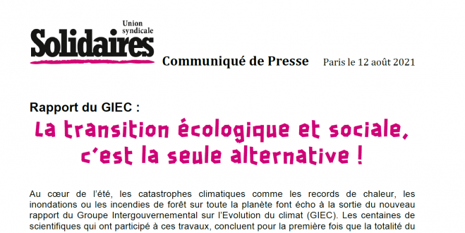 Rapport du GIEC : La transition écologique et sociale, c’est la seule alternative !