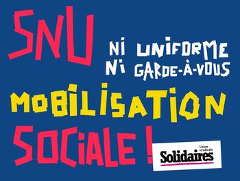 Comme si la progression des idées d’extrême-droite n’était pas suffisamment inquiétante, le gouvernement se lance dans l’organisation d’un dispositif, qui fera la part belle aux idées nationalistes et militaristes. « L’universalité » vantée par ceux qui ont pensé le SNU est un signe inquiétant pour tous-tes nos camarades femmes, racisé-es, LGBTI… On n’ose imaginer le climat virilo-militariste dans lequel baigneront ces jeunes appelé-es après une journée à s’exercer au « parcours du combattant » ou au « raid commando dans la jungle, avec bivouac ». Sans parler de l'inadaptation à de nombreuses formes de handicap d’un tel projet.