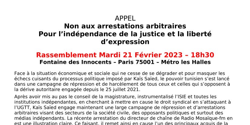 - A l’arrêt immédiat de ces arrestations arbitraires