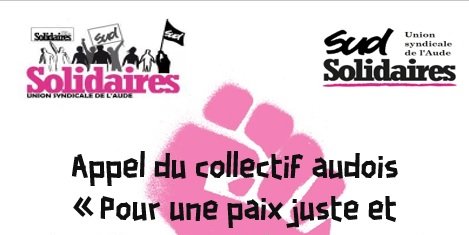 L'union syndicale SOLIDAIRES est signataire de l'appel national « Pour une paix juste et durable entre Palestiniens et Israéliens » .
