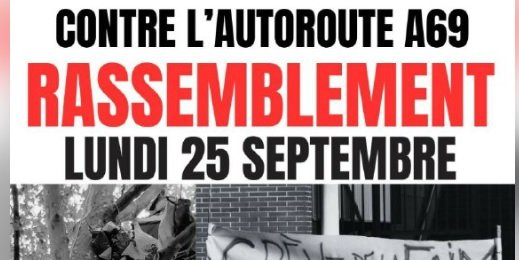 Autoroute A69 entre Toulouse et Castres : RASSEMBLEMENT DE SOUTIEN AUX GREVISTES DE LA FAIM lundi 25 septembre à 18h00 à Carcassonne (portail des Jacobins)