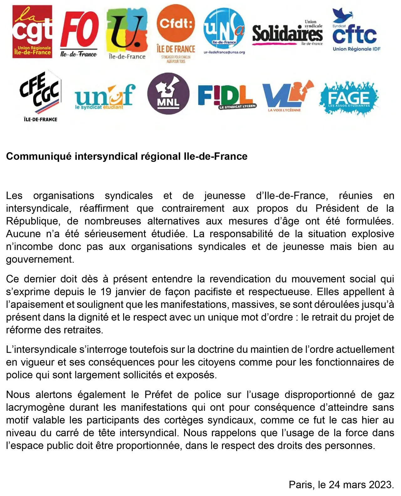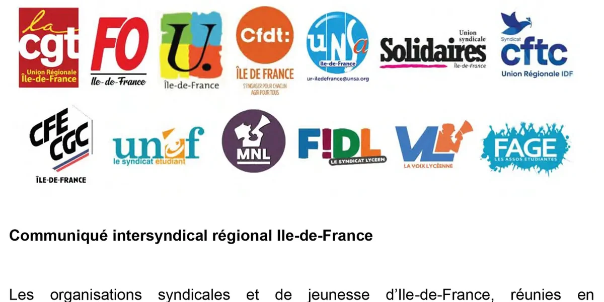 Communiqué intersyndical régional Ile-de-France