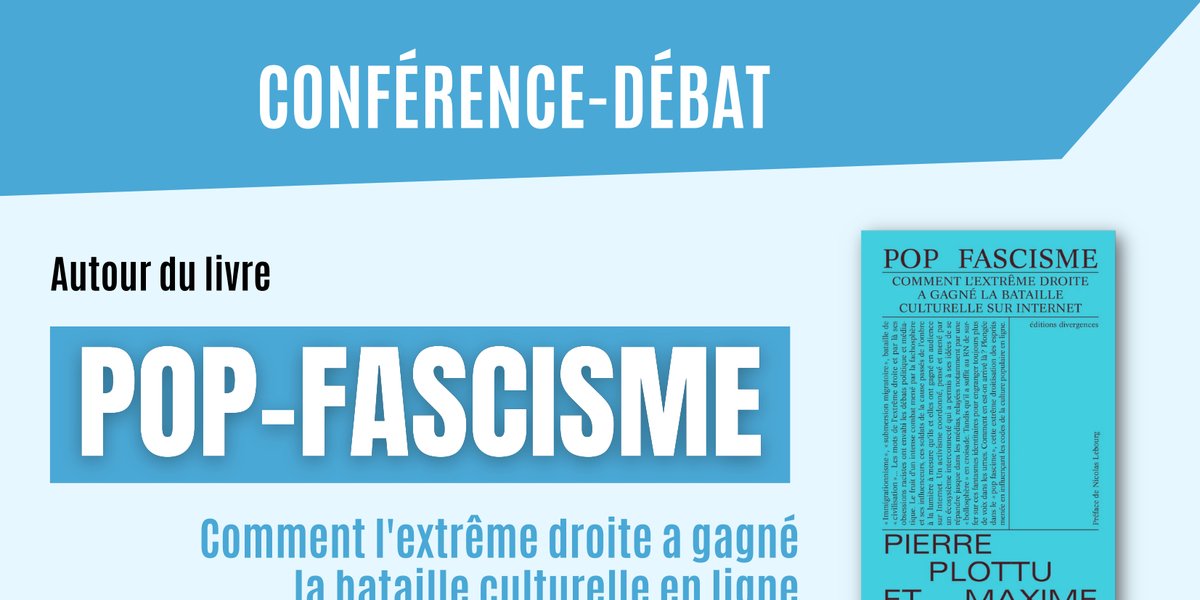 Le collectif 63 de lutte contre les extrêmes droites (dont fait partie Solidaires Auvergne) organise avec les amis du temps des Cerises une conférence débat autour du livre "Pop Fascisme. Comment l'etxrême droite a gagné la bataille culturelle en ligne", en présence des auteurs Pierre Plottu et Maxime Macé.