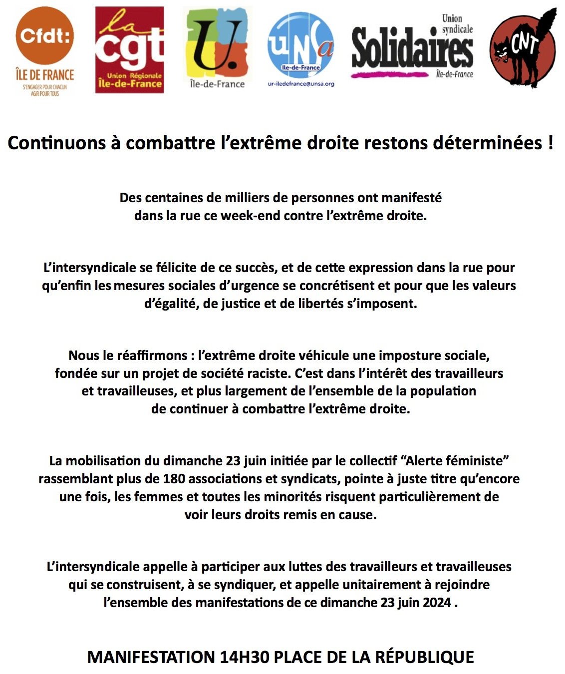 Continuons à combattre l’extrême droite restons déterminées !