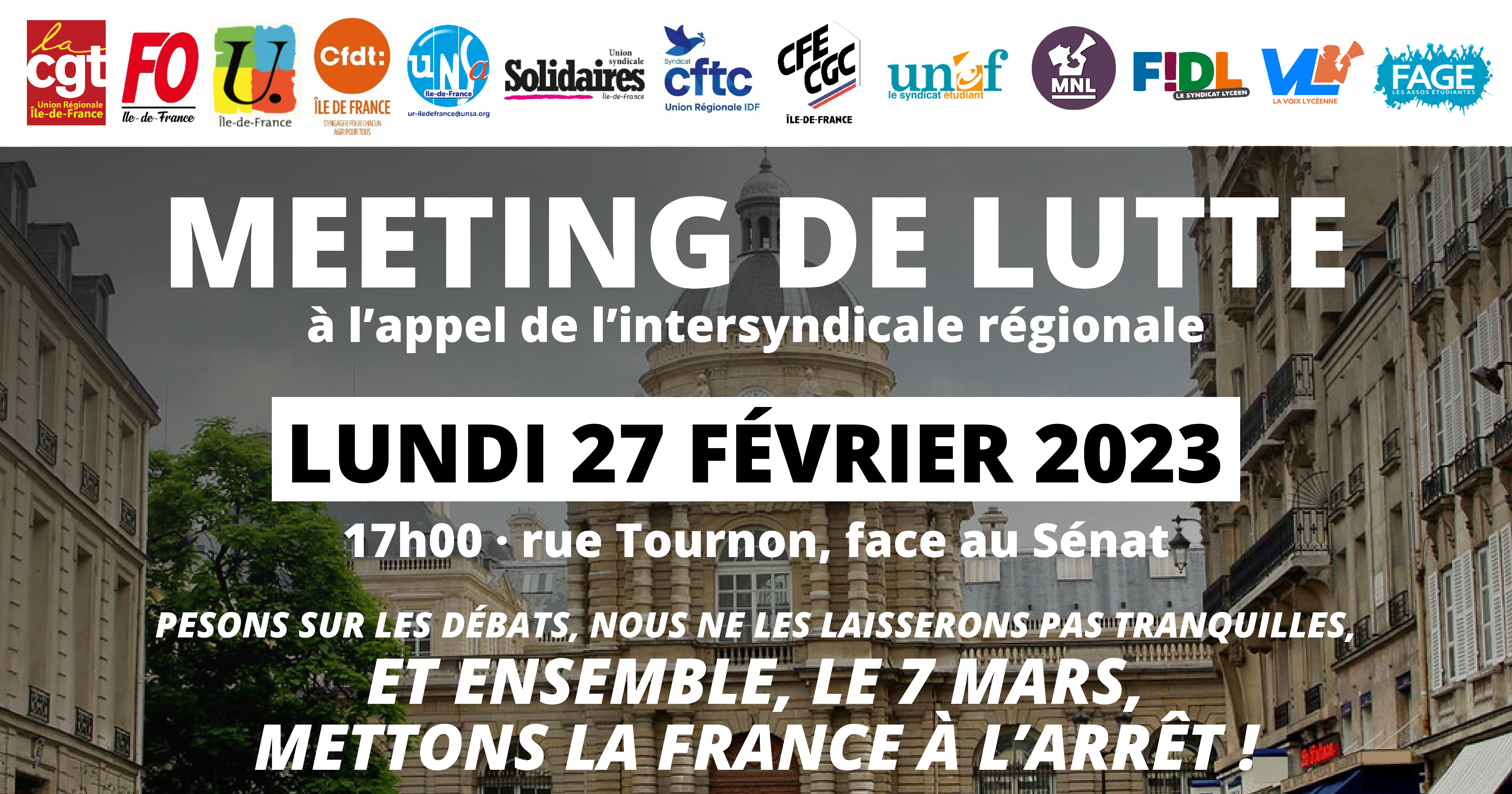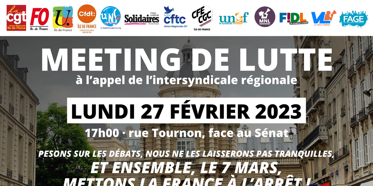 Meeting de lutte ! Pesons sur les débats, nous ne les laisserons pas tranquilles, et ensemble, le 7 mars, mettons la France à l’arrêt !