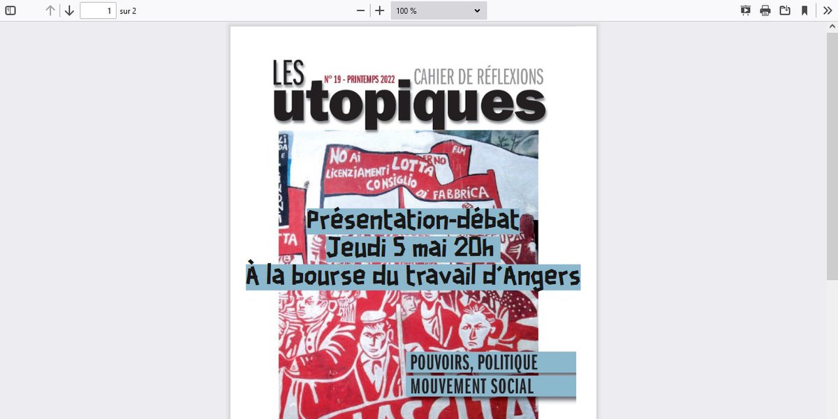 Présentation débat :"les utopiques" le jeudi 05 mai à 20h00 à Angers