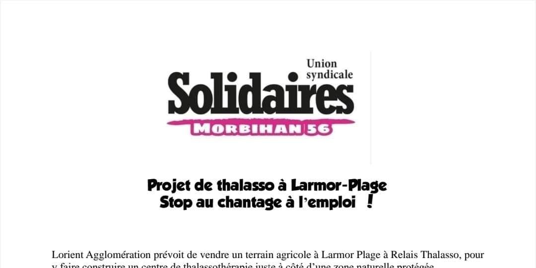 Projet de Thalasso à Larmor-Plage: Stop au chantage à l'emploi !