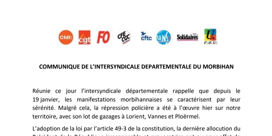 Solidaires 56 - Communiqué de presse intersyndical suite à la journée de mobilisation du 23 mars 2023
