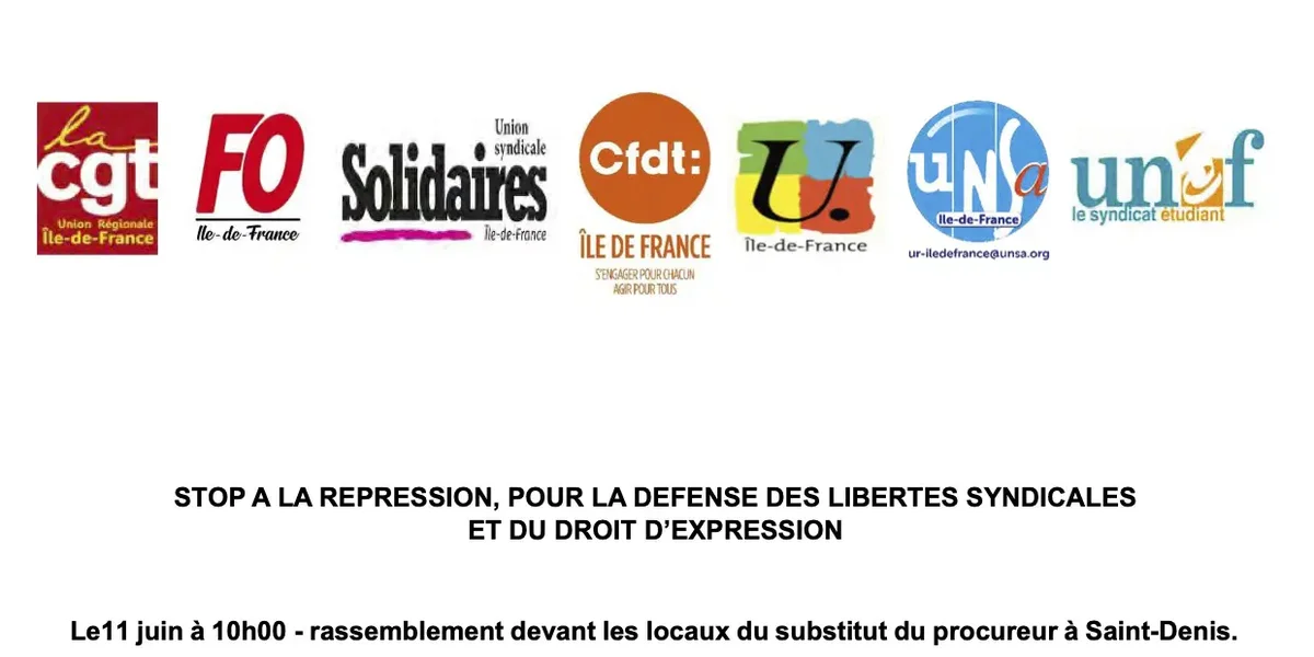 Stop a la repression, pour la defense des libertes syndicales et du droit d’expression