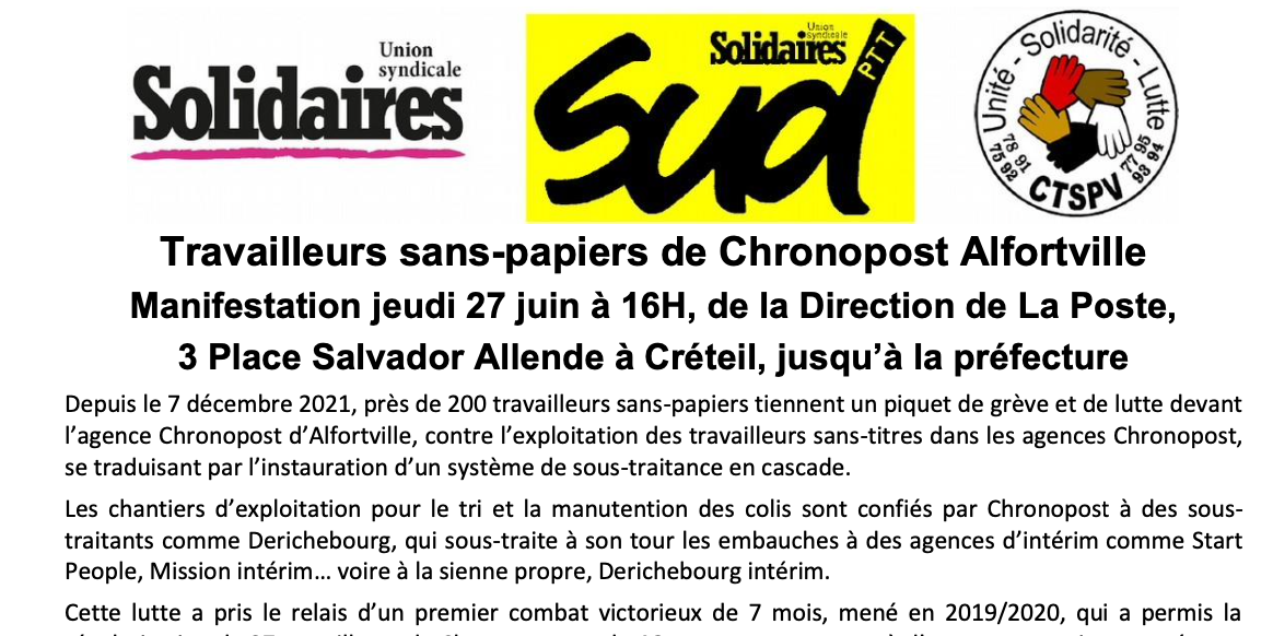 Soutien financier à la lutte : https://www.cotizup.com/sans-papiers-chrono-alfortvill