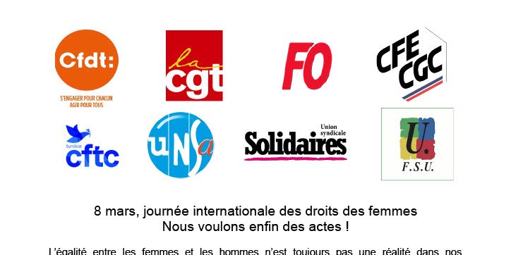 8 mars : "Nous voulons enfin des actes!"(CP des 8 orga syndicales)