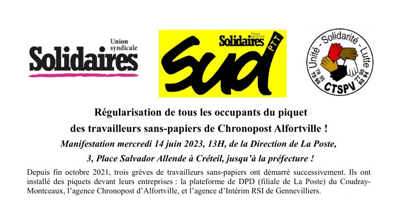 (Créteil) Manifestation le 14 juin à 13h pour la régularisation des occupants du piquet de Chronopost