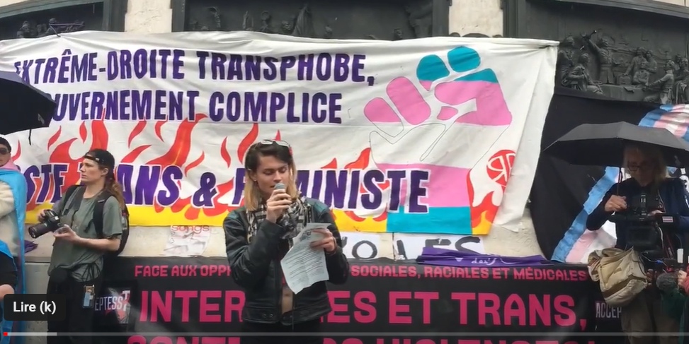 Intervention de Néo pour Solidaires au rassemblement du 5 mai contre la transphobie à Paris