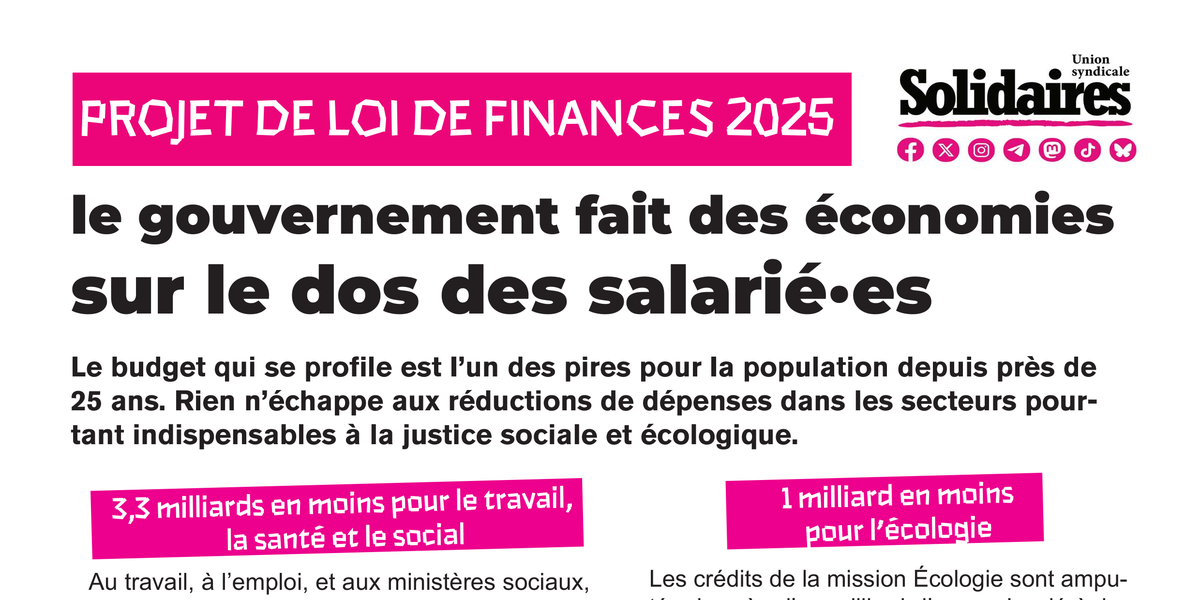 Les revendications de Solidaires sont à l’opposé de ce projet de budget : il est possible de financer des services publics de qualité et des mesures de justice sociale et écologique, et c’est indispensable !