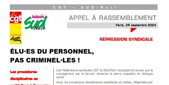 Les procédures disciplinaires se multiplient à l’encontre des élu·es et mandaté·es. Ainsi, la direction SNCF a tout récemment infligé des sanctions lourdes à l’encontre de représentant·es du personnel de nos deux Fédérations.