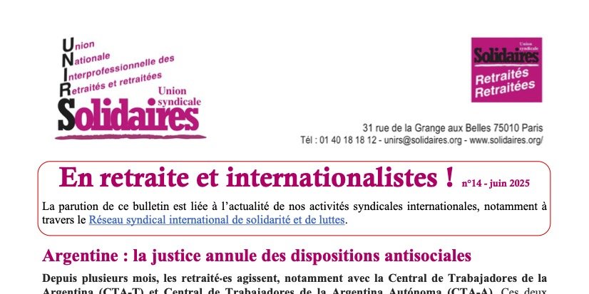 Voici le numéro 14 du bulletin de l'UNIRS En retraite et internationalistes ! Au sommaire :