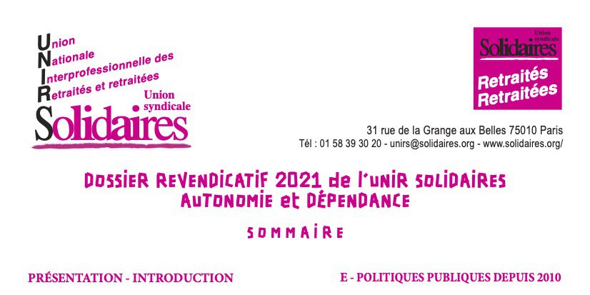 La question de la perte d'autonomie des personnes âgées concerne tout le monde, et pas seulement les personnes âgées fragilisées. La perte d'autonomie est l'un des domaines où la solidarité nationale devrait trouver le mieux à s'exprimer. Ce dossier comprend l’état des lieux, les politiques depuis 2010 et nos perspectives de luttes revendicatives.