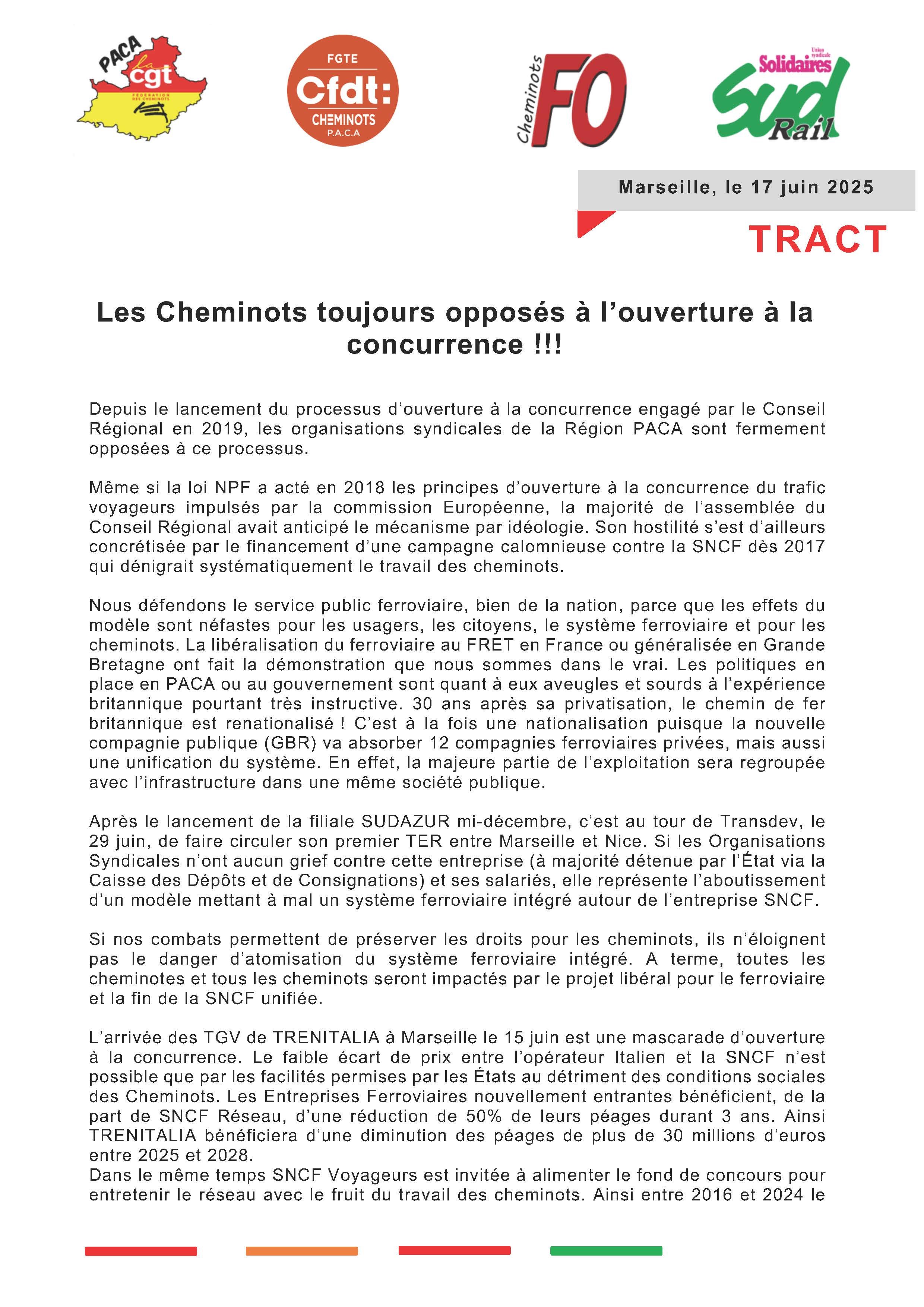 La libéralisation du ferroviaire au FRET en France ou généralisée en Grande-Bretagne ont fait la démonstration que nous sommes dans le vrai. Les politiques en place en PACA ou au gouvernement sont quant à eux aveugles et sourds à l’expérience britannique pourtant très instructive. 30 ans après sa privatisation, le chemin de fer britannique est renationalisé !