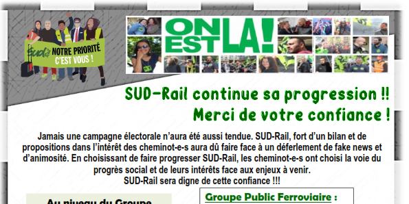 SUD-Rail, fort d’un bilan et de propositions dans l’intérêt des cheminot-e-s aura dû faire face à un déferlement de fake news et d’animosité. En choisissant de faire progresser SUD-Rail, les cheminot-e-s ont choisi la voie du progrès social et de leurs intérêts face aux enjeux à venir.