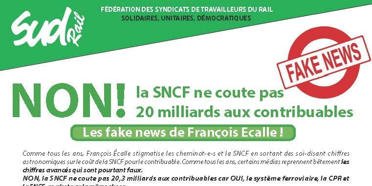 Comme tous les ans, François Écalle stigmatise les cheminot-e-s et la SNCF en sortant des soi-disant chiffres astronomiques sur le coût de la SNCF pour le contribuable. Comme tous les ans, certains médias reprennent bêtement les chiffres avancés qui sont pourtant faux.