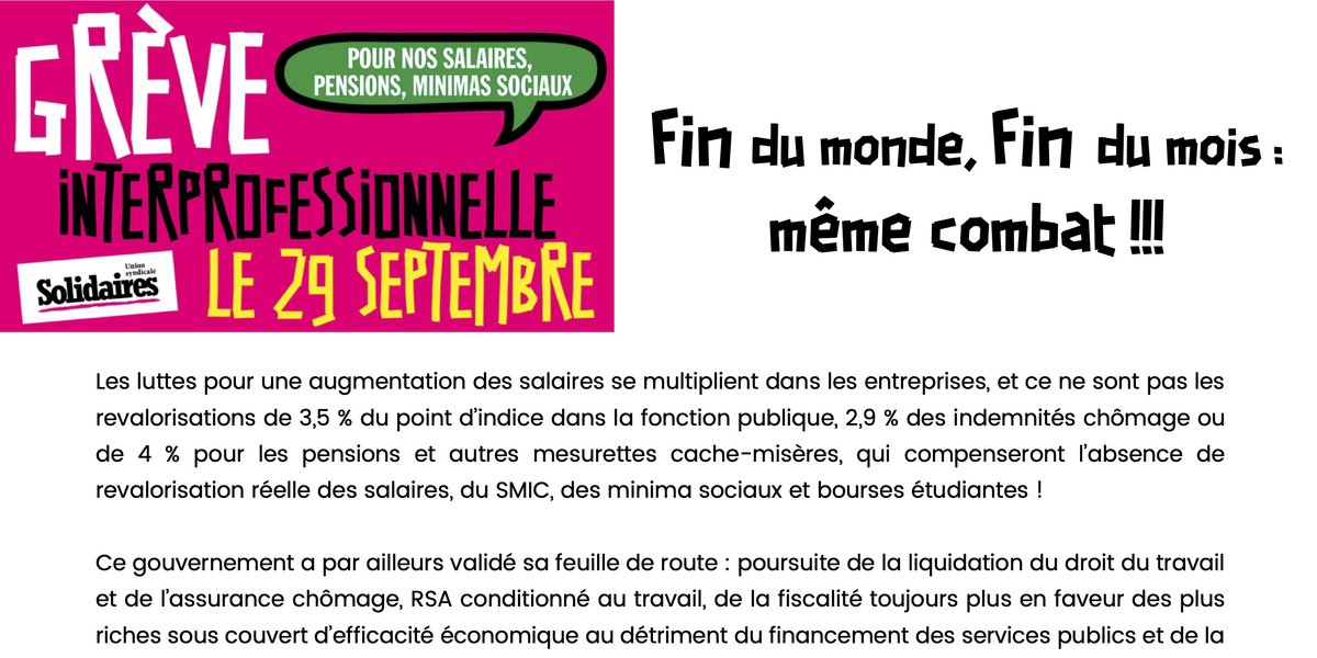 SUD Culture Solidaires appelle à se mobiliser pour cette journée du 29 septembre et à rejoindre les assemblées générales, manifestation par la grève ce jour.