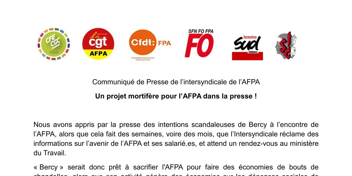 Intersyndicale AFPA : Un projet mortifère pour l'AFPA dans la presse