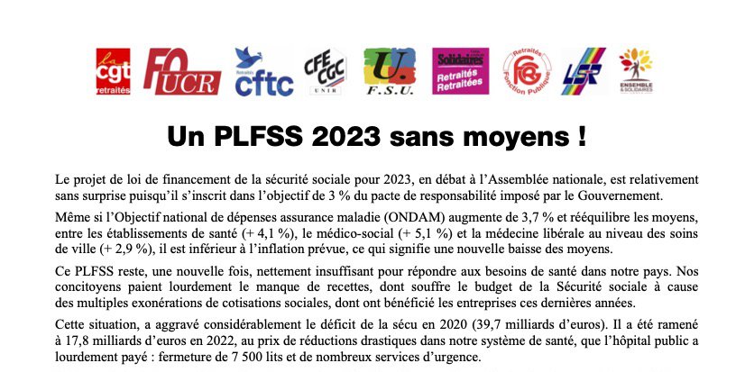 Communiqué : un PLFSS 2023 sans moyens !