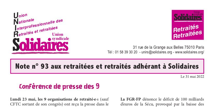 Note UNIRS de mai 2022