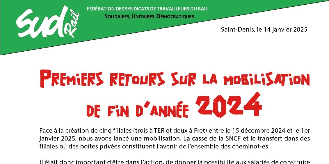 Cela n’a pas suffi en décembre 2024, mais SUD-Rail reste déterminé : ensemble, nous devons construire la prochaine bataille pour préserver nos droits et gagner !