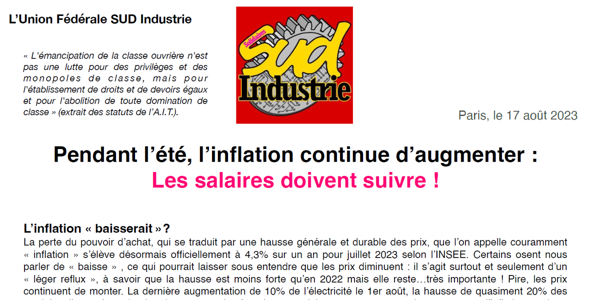 SUD Industrie - Pendant l’été, l’inflation continue d’augmenter : Les salaires doivent suivre !