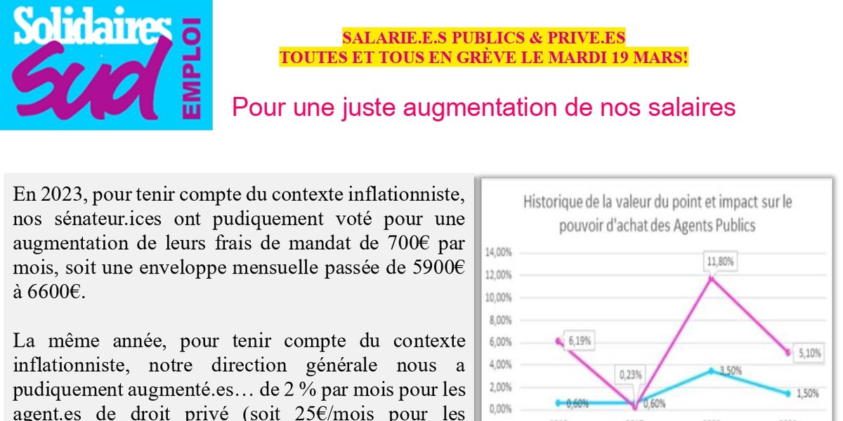 Tous en grève la 19 mars 2024 pour ue juste augmentation de nos salaires