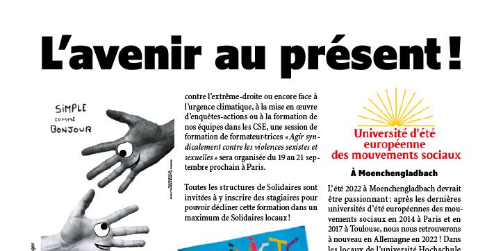 Solidaires y animera des ateliers. Plus d’informations: esu22.eu/fr