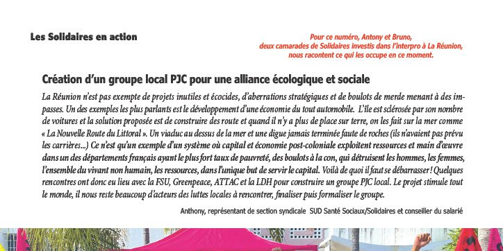 Pour ce numéro, Antony et Bruno, deux camarades de Solidaires investis dans l’interpro à La Réunion, nous racontent ce qui les occupe en ce moment.