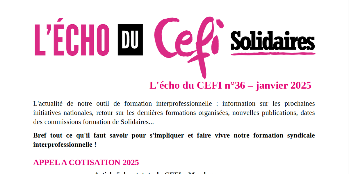 L'écho Du Cefi N° 36 Janvier 2025