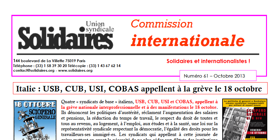 Solidaires et internationalistes ! : N° 61