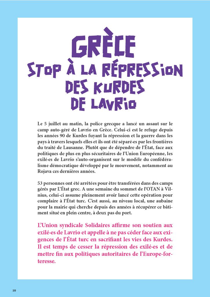 L'union syndicale Solidaires affirme son soutien aux exilé.es de Lavrio et appelle à ne pas céder face aux exigences de l'État turc en sacrifiant les vies des Kurdes.